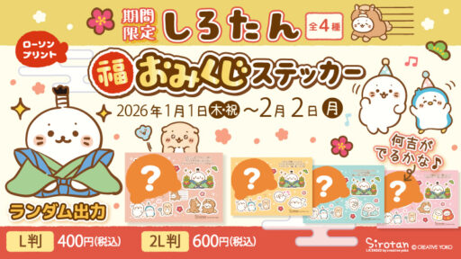 【2026/1/1(木・祝)~2/2(月)】ローソンプリントに「しろたん福おみくじステッカー」が期間・・・